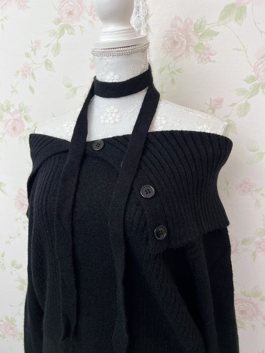 Off Shoulder Wide Sleeved Knit Top (Black)