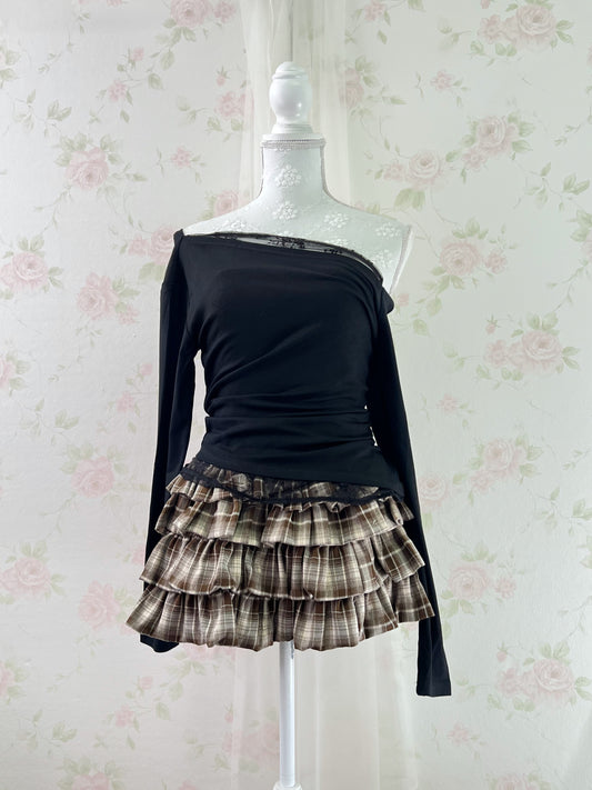 Side Bow Checked Shoujo Mini Skirt (Brown) S,M,L
