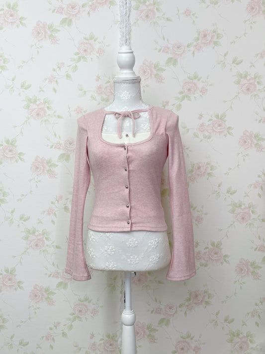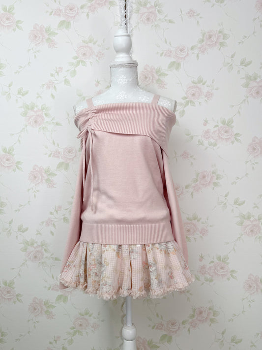 Side String Off Shoulder Shoujo Knit Top (Pink)