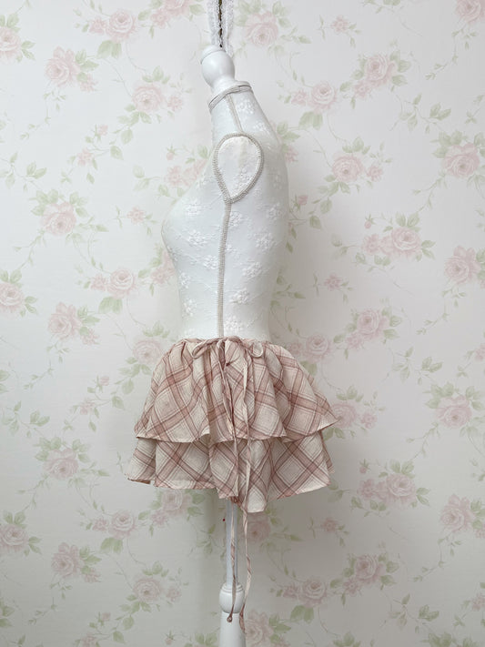 Pium Hem Lace Checked Skirt (Grayish Pink)