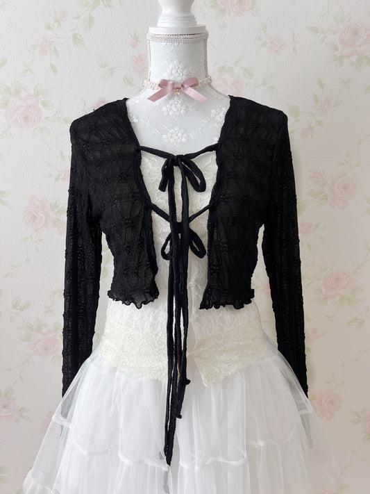 Message Restock RequestFront Double Bow Soft Cardigan (Black)