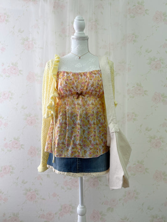 Message Restock RequestFloral Girly Lace Chiffon Camisole (Yellow)