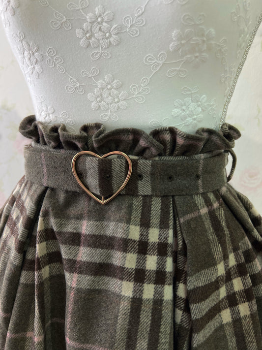 Message Restock Requestevelyn Heart Buckle Belt Checked Skirt (Brown)