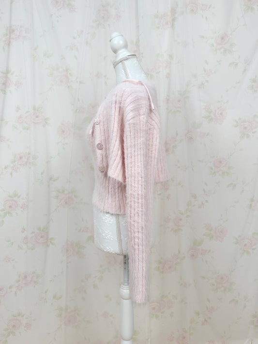Message Restock RequestGRL Shaggy Camisole Set Cardigan (Baby Pink)