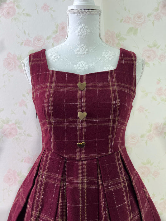 Message Restock Requestbobon21 Heart Button Jumper Mini Dress (Bordeaux)