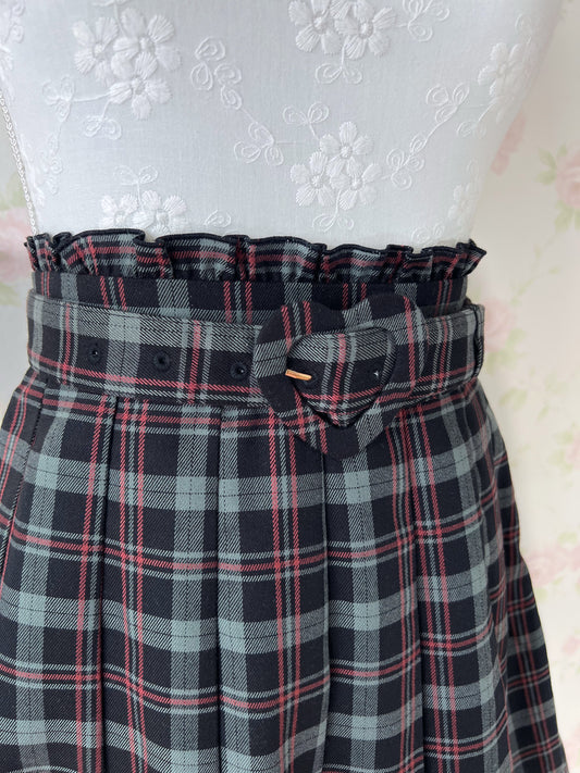 Secret Honey Heart Belt Checked Pleated Skirt (Green)