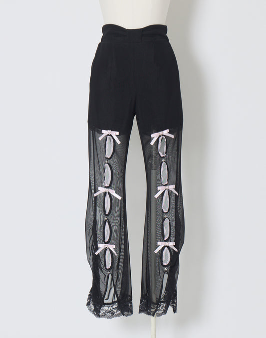Message Restock RequestAVENCHUMU Ribbon and stone front open tulle pants