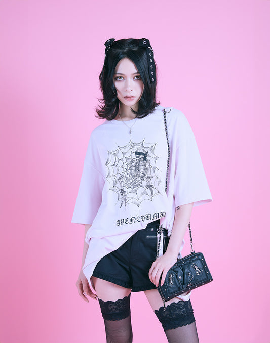 Message Restock RequestAVENCHUMU Skull illustration print studded cross t-shirt