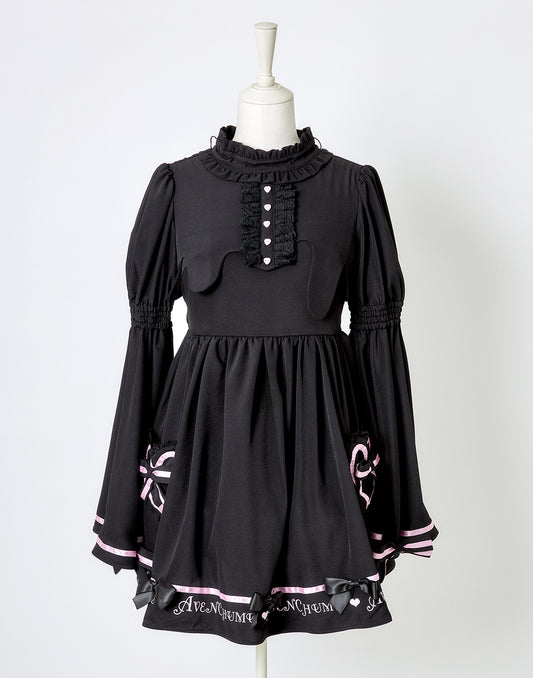 Message Restock RequestAVENCHUMU Melty bicolor ribbon flare sleeve one piece