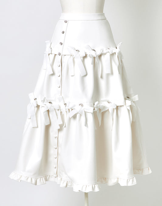 Message Restock RequestAVENCHUMU Leather look hole ribbon skirt