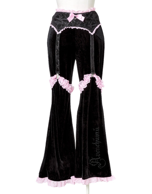 Message Restock RequestAVENCHUMU Rhinestone logo garter velor flare pants