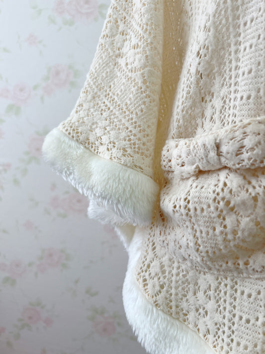 GRL Fake Fur Hood Poncho Coat (Ivory)