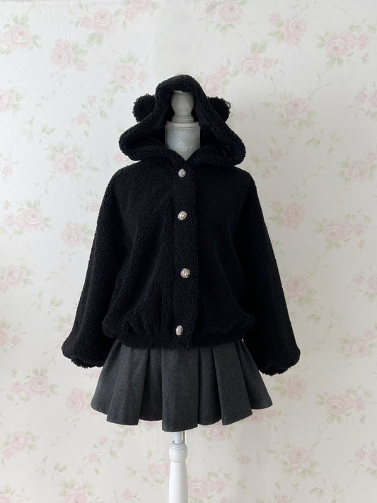 Message Restock RequestROJITA Bear Ear Boa Hoodie Jacket (Black)