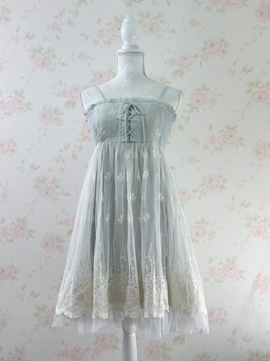 Message Restock RequestL'EST ROSE Lace Hem Tulle Dress (Green)