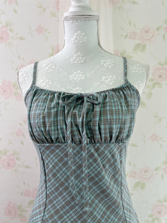 GRL Camisole Gathering Checked Dress (Mint Green)