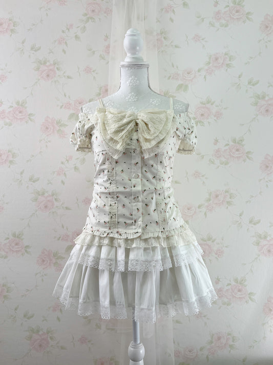 GRL Petite Floral Puff Sleeved Cotton Blouse (Ivory)