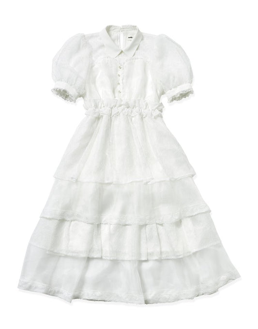 Message Restock Requestmellfy memory Lacy millefeuille frill collar Dress