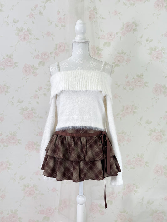 GRL Off Soulder Ribbon Sweater (Ivory)