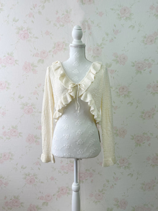 Message Restock RequestGRL Shoujo Girlie Ruffled Cardigan (Ivory)