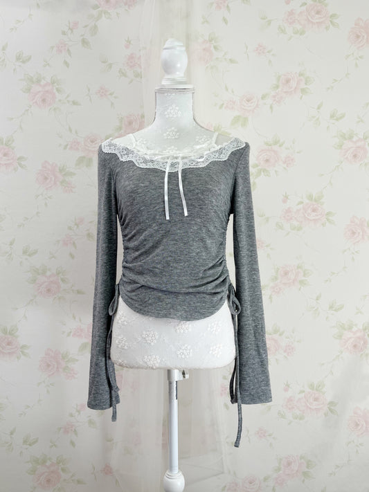 Message Restock RequestGRL Lacy Off Should Side String Top (Gray)