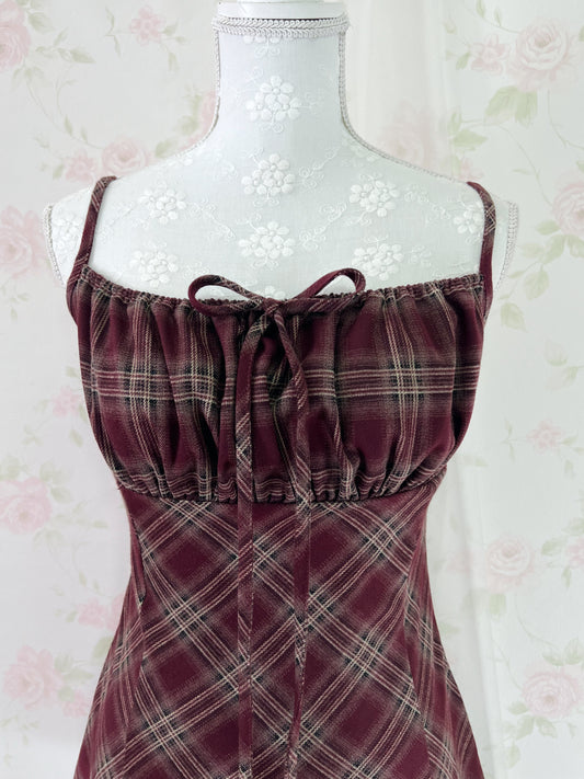 (Pre-order)Trapezoid Slit Checked Skirt (Smoky Brown)