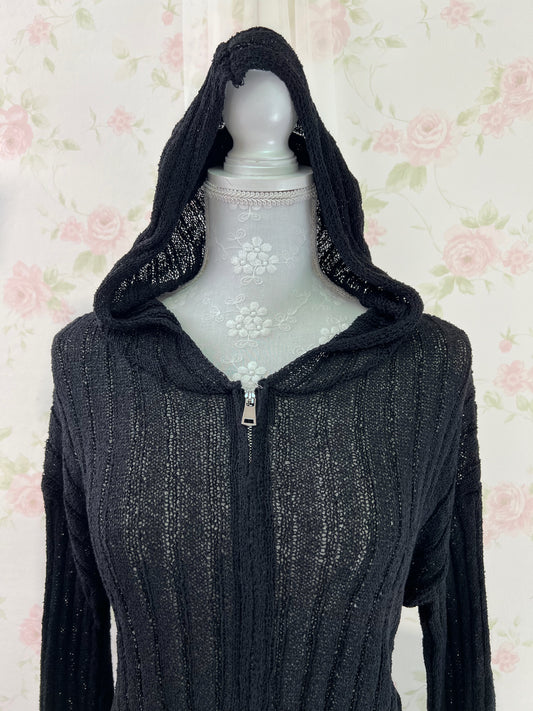 GRL Ruffled Hem Knitted Camisole Cardigan Set (Chocolate)