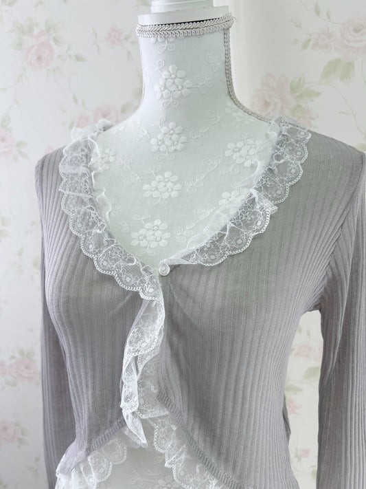 GRL Lacy Lacy Princess Sleeve Cardigan (Gray)