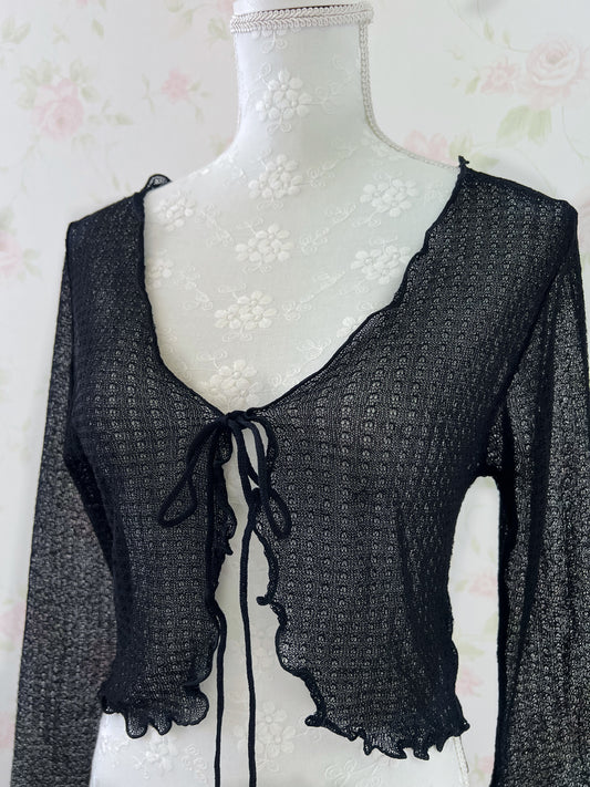 GRL Wide Sleeve Sheer Cardigan (Black)