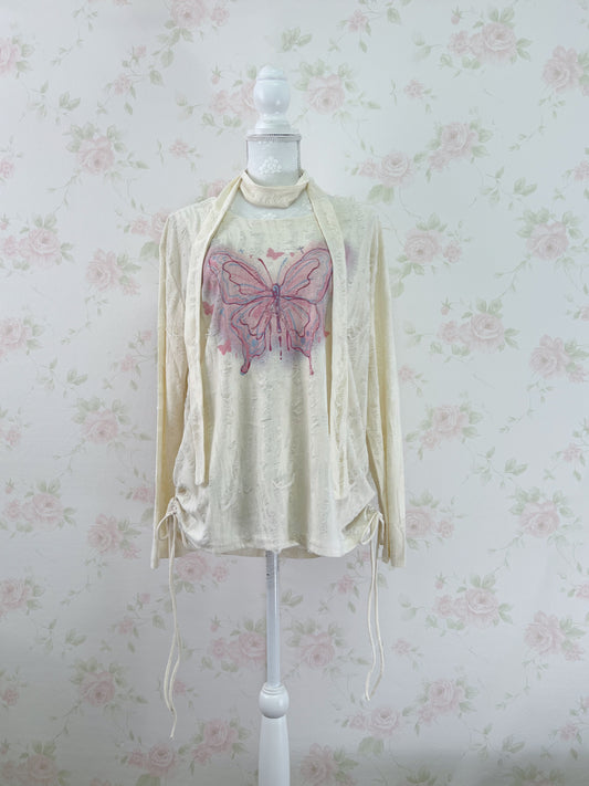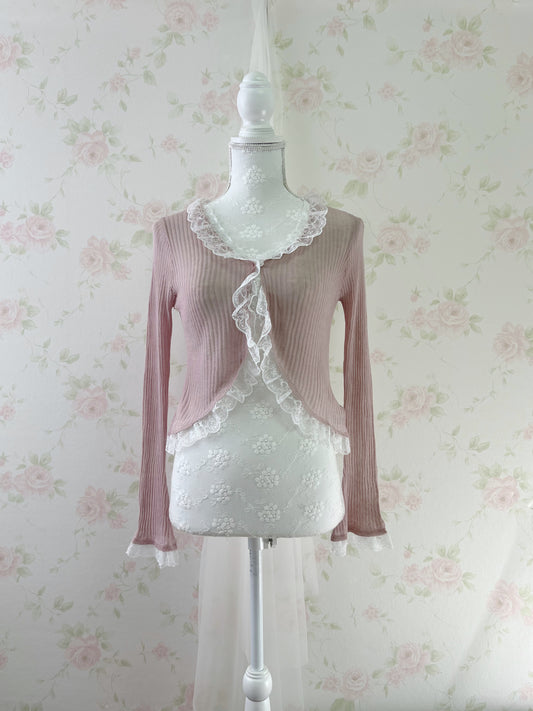 GRL Lacy Lacy Princess Sleeve Cardigan (Pink)