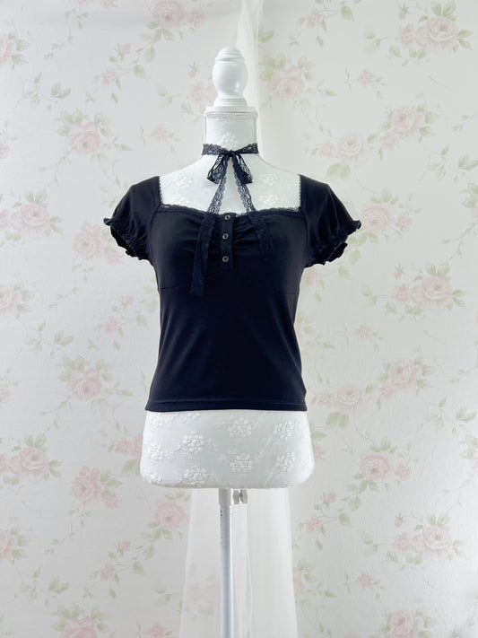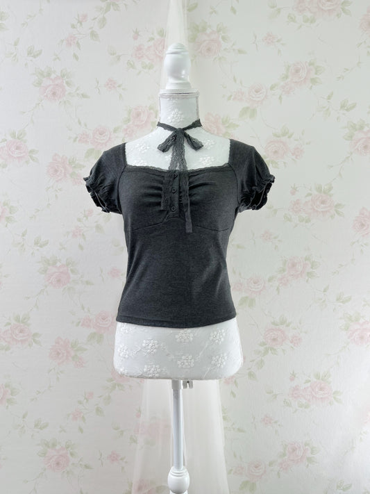 GRL Lacy Choker Shoujo Top (Dark Gray)