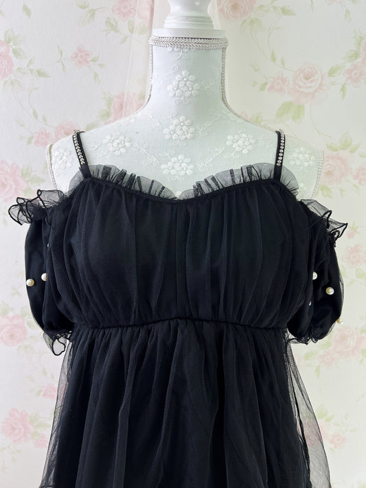 Ank Rouge Crystal Strap Chiffon Top (Black)