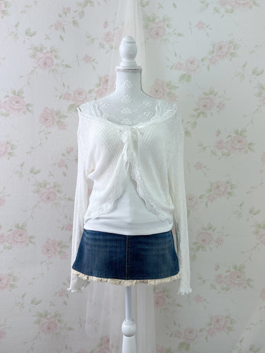 GRL Lacy One Button Cardigan (Ivory)