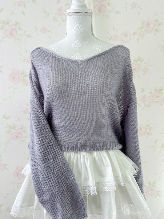 GRL Soft Loose Gyaru Sweater (Purple Blue)