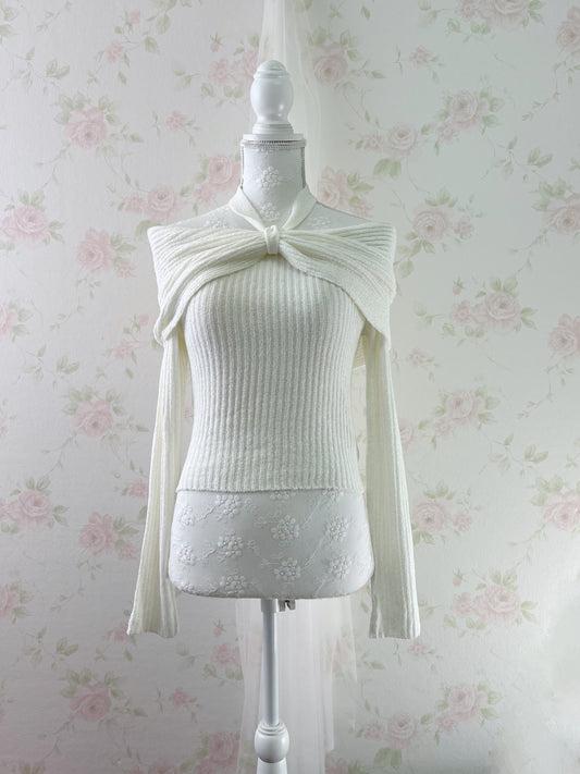 GRL Bow Front Halter Neck Ribbon Sweater (Ivory)