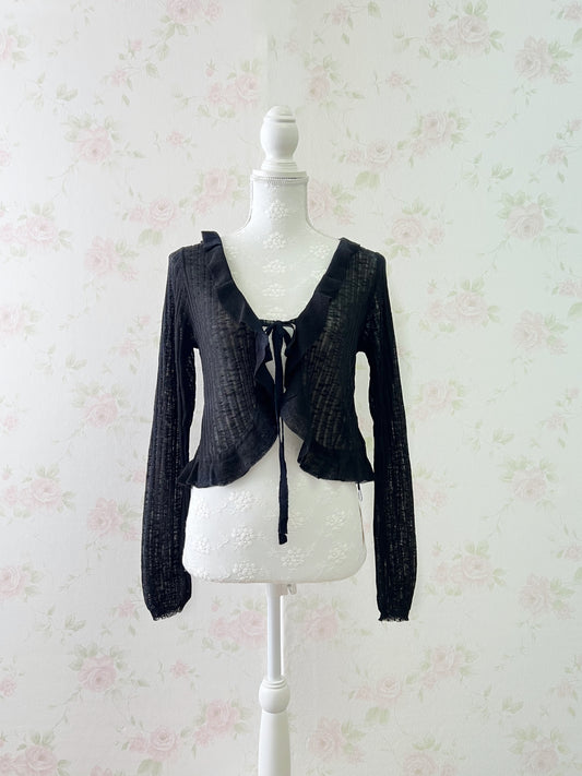 Message Restock RequestGRL Shoujo Frilled Hem Cardigan (Black)