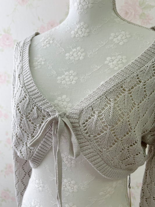 Message Restock RequestGRL Front Tie Long Sleeved Bolero Cardigan (Grayish Beige)