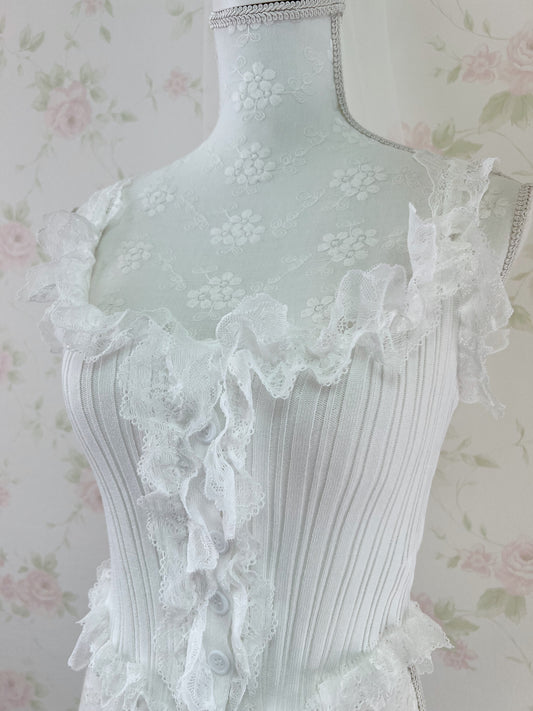 Message Restock RequestLacy Ribbed Button Up Tank Top(white)