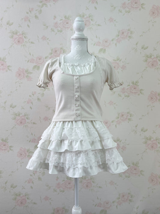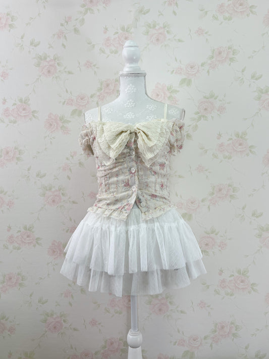 axes femme Y2K Big Bow Lace Camisole (Ivory)