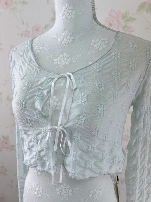 GRL Floral Embroidery Ribbon Cardigan (Mint Blue)