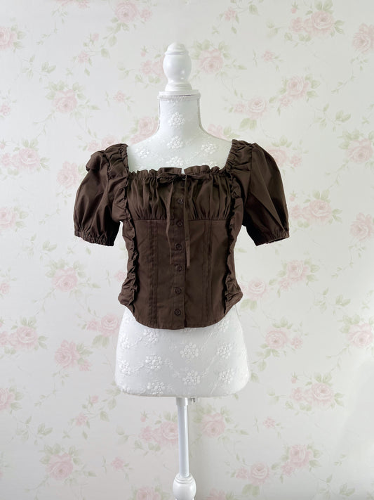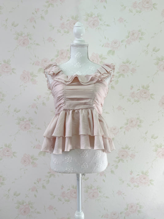 GRL Ruffled Sleeve Peplum Top (Pink Beige)