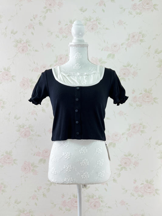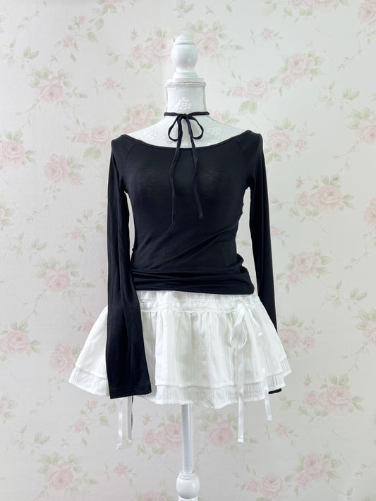GRL York Lacy Sleeve Halter Neck Top (Black)