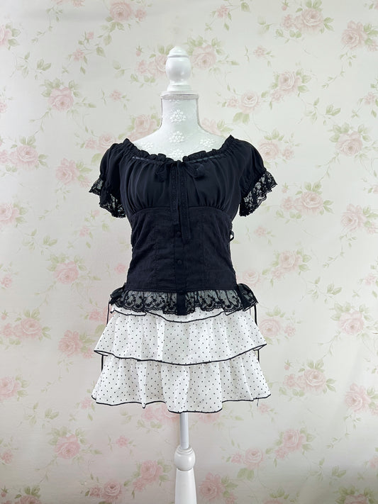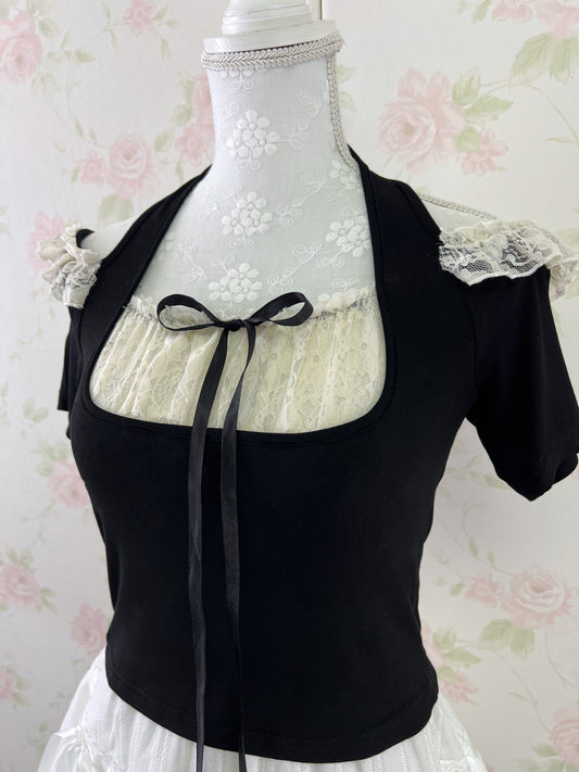Message Restock Requestaxes femme 2 Way Shoulder Laced Up Top (Black)