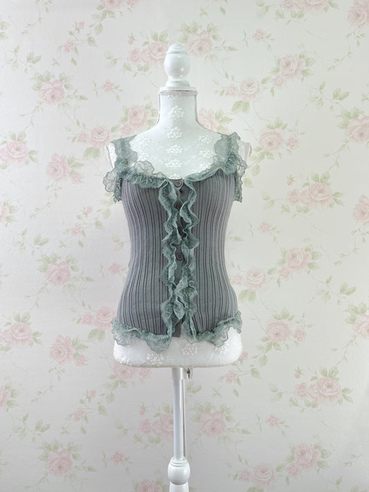 Message Restock RequestLacy Ribbed Button Up Tank Top(Gray)