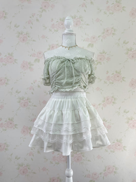 Message Restock RequestGRL 2 Way Shoulder Lacy Top (Mint Green)