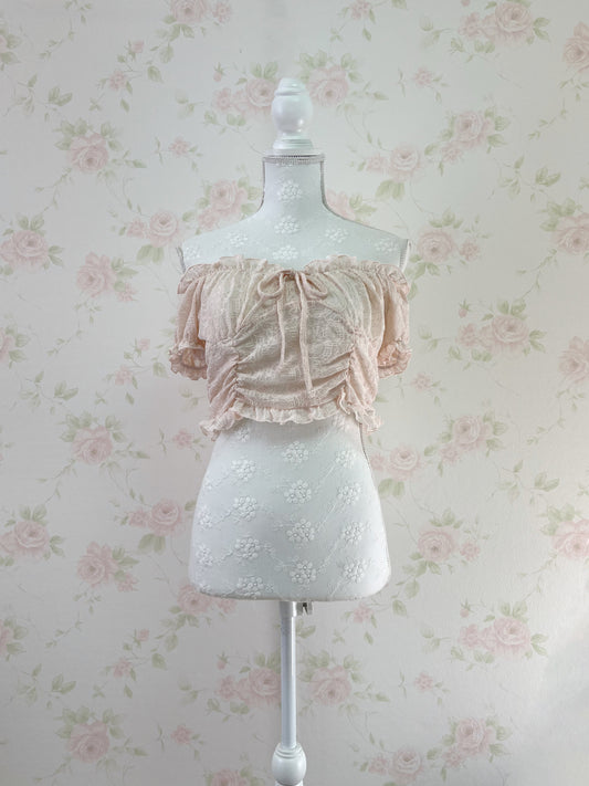 Message Restock RequestGRL 2 Way Shoulder Lacy Top (Peach Pink)