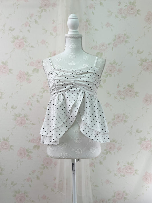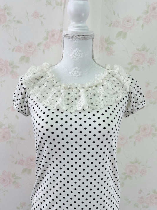 L'EST ROSE Lace Collar Polka Dot T-Shirt
