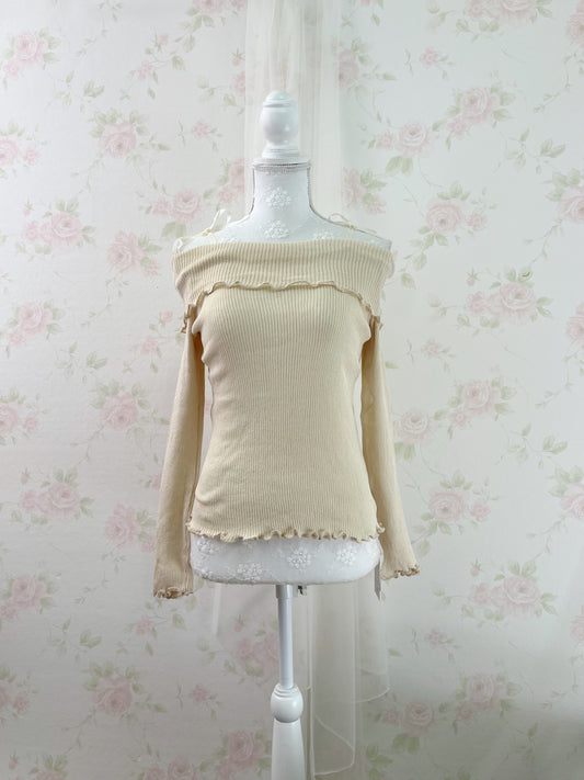 GRL Off Shoulder String Knit Top (Milk Tea Beige)