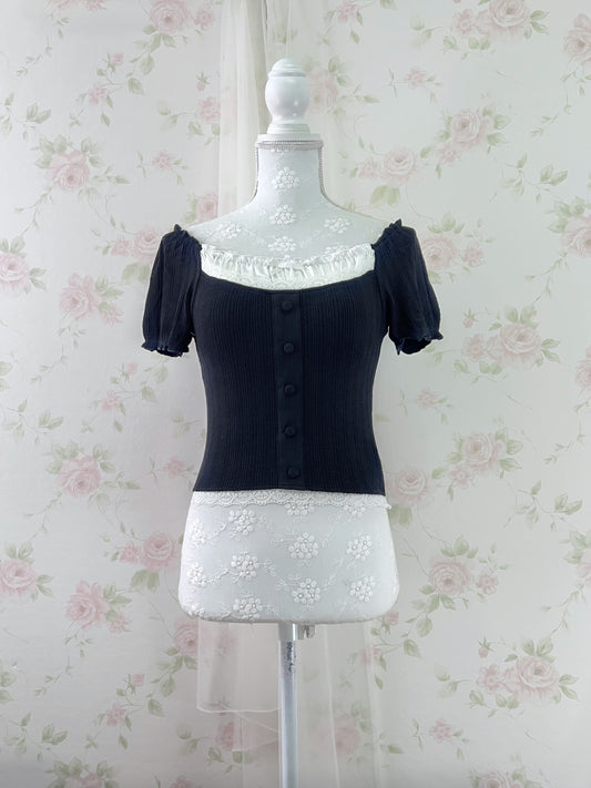 GRL Lace Shoujo Milkmaid Tops (Black)