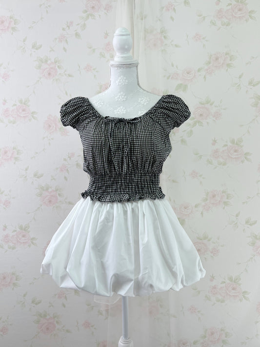 GRL 2 Way Gingham Checked Cotton Blouse (Black)