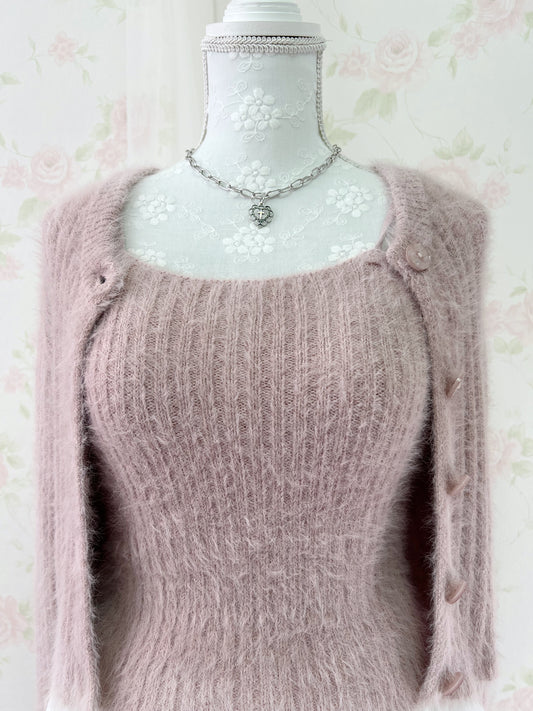 GRL Shaggy Camisole Set Cardigan (Pink)